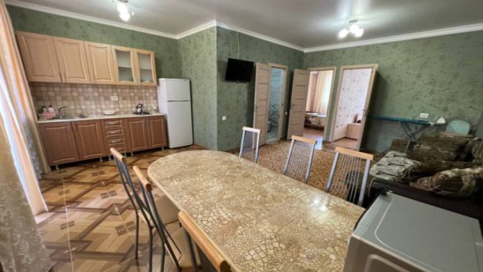 Номер состоит из комнаты-спальни (2 места, двуспальная кровать), комнаты-спальни (2 места, двуспальная кровать), комната-кухня (2 места - диван).