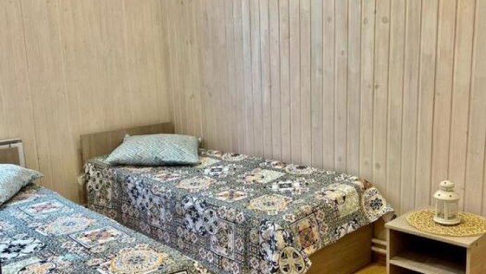 Большая двуспальная кровать либо 2 односпальные с ортопедическими матрасами.