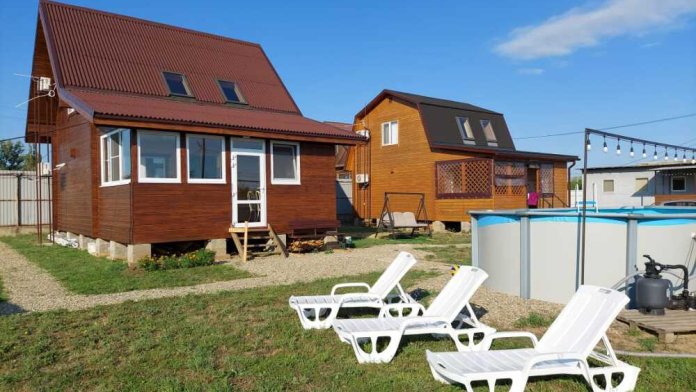 На территории два отдельных дома, территория, бассейн, места для отдыха на свежем воздухе, хозблок, парковка - общие.
