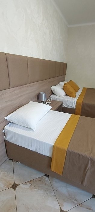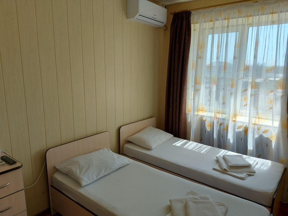 Двухместный, комфортный номер. Оборудован всем необходимым для комфортного отдыха и проживания. Возможно установка доп.места (платно +500руб/ночь). Двухместные номера находится как на первом, так и на втором этаже (уточняйте при бронировании). Номер укомплектован кондиционером, смарт TV 43», цифровое тв, Wi-Fi, холодильник, эл.чайник, посуда, фен, сейф. Санузел с душевой кабиной. На входе перед номером столик с креслами. Курение в номере строго запрещено.
