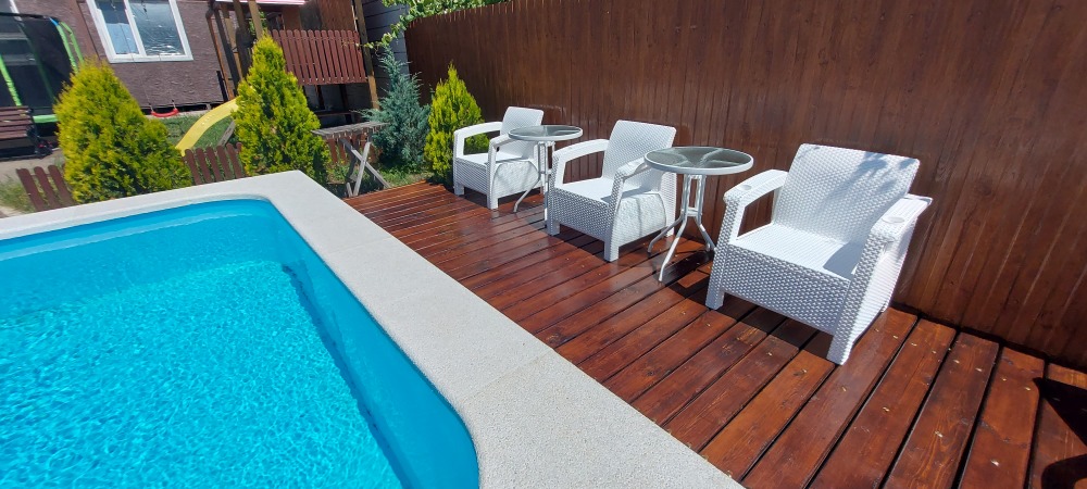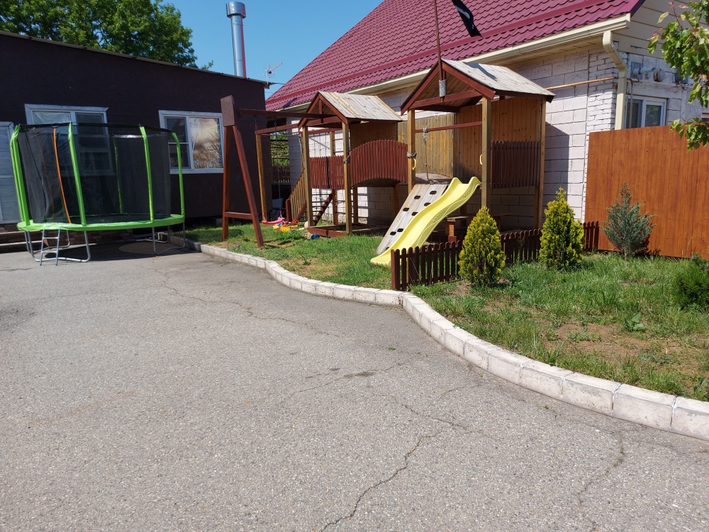 Огороженная территория позволяет безопасно и с комфортом отдыхать детям и взрослым. В пользовании каждого гостя детская площадка, большой батут, бассейн с подогревом и кухня для самостоятельного приготовления пиши. На территории находится кафе-столовая с фирменным меню.