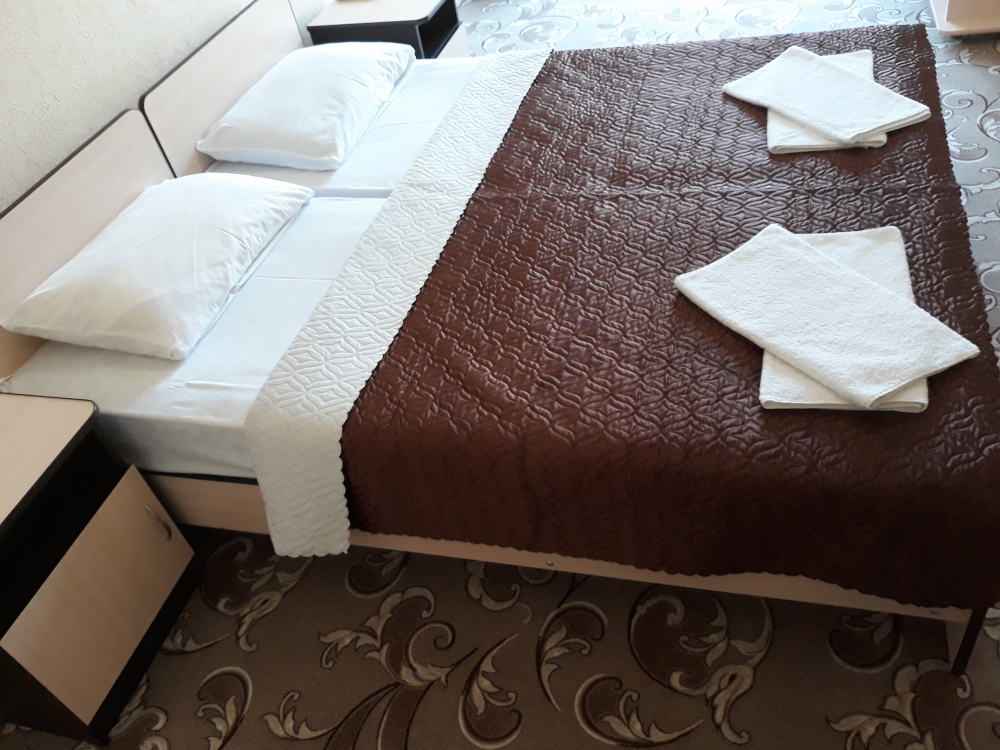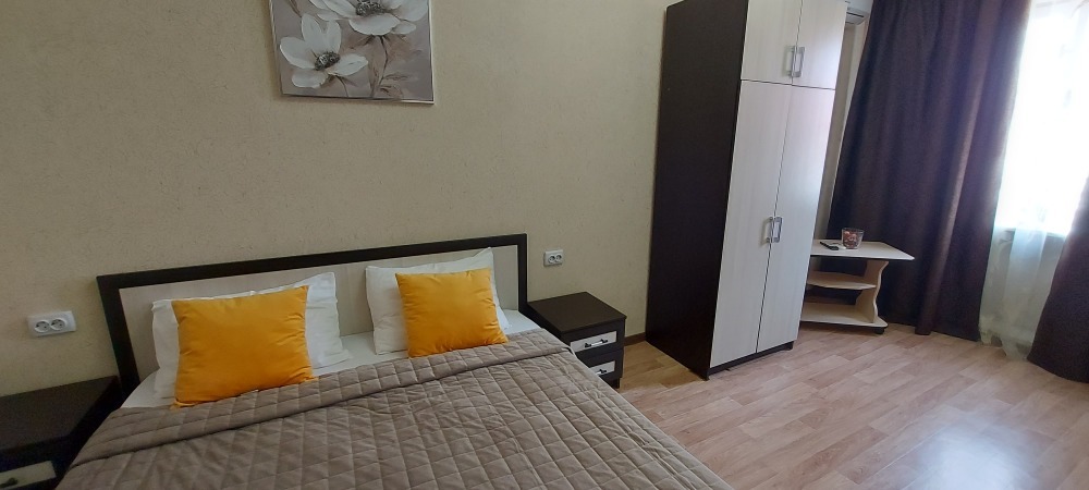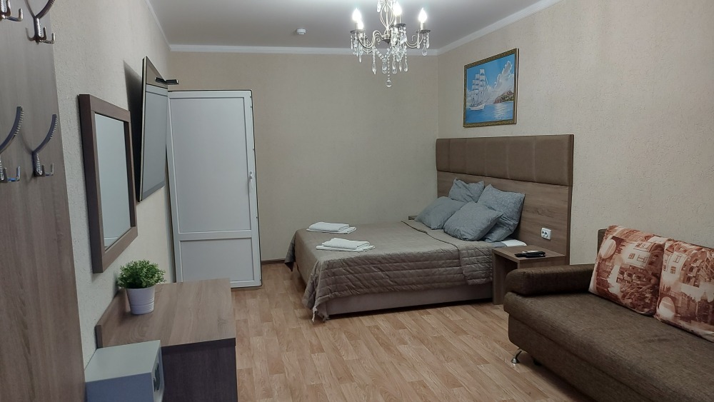 Двухместный, двухкомнатный, комфортный номер. Оборудован всем необходимым для комфортного отдыха и проживания. Возможно установка доп.места (платно +500руб/ночь). Номер находится на первом этаже. Номер укомплектован кондиционером, смарт TV 43», цифровое тв, Wi-Fi, холодильник, эл.чайник, посуда, фен, сейф. Санузел с душевой кабиной. Курение в номере строго запрещено (штраф и выселение)! На территории отеля «Центральный» расположен большой стационарный двухуровневый бассейн с подогревом на 100 тонн чистейшей воды. Возможно проживание с питомцами, по согласованию (платно +500руб/ночь).
