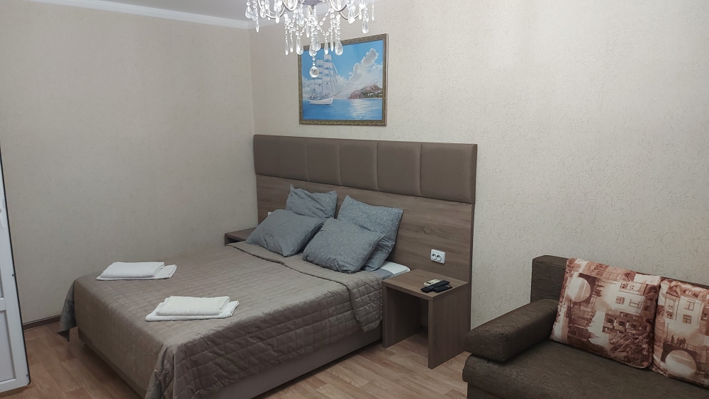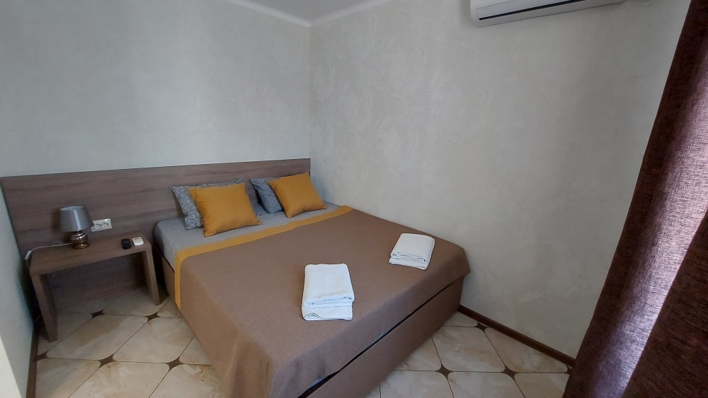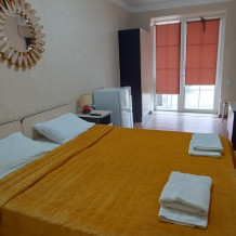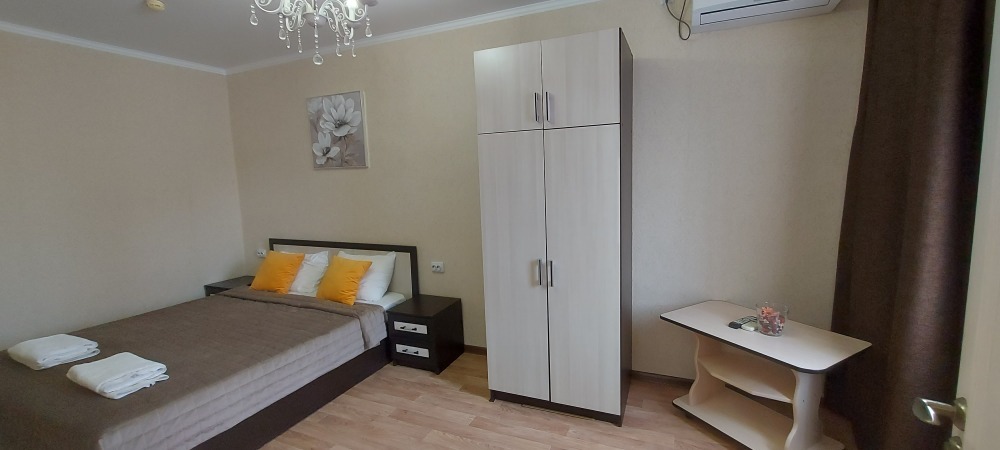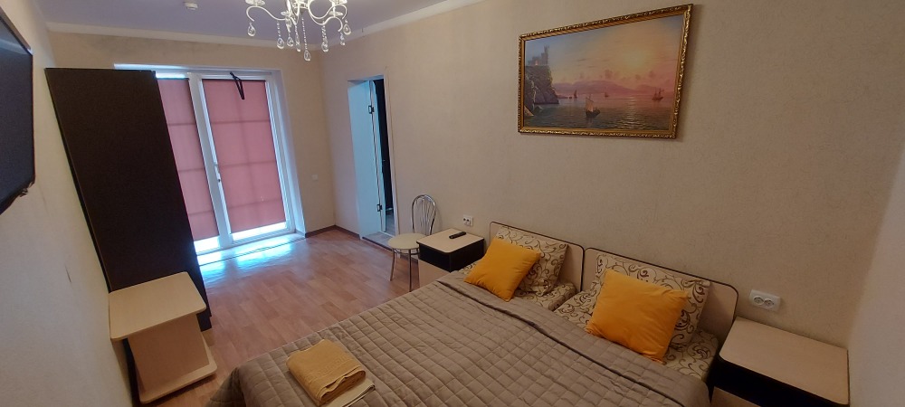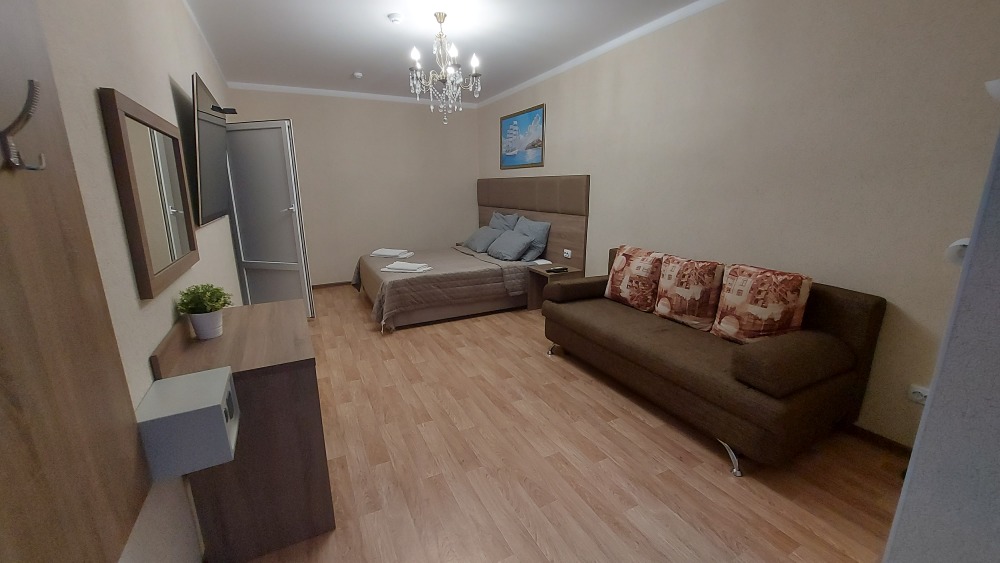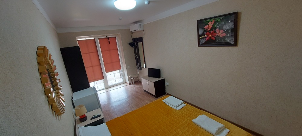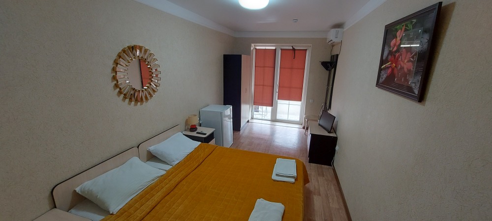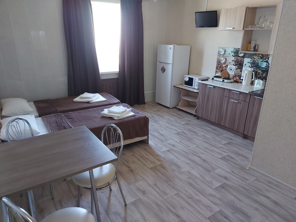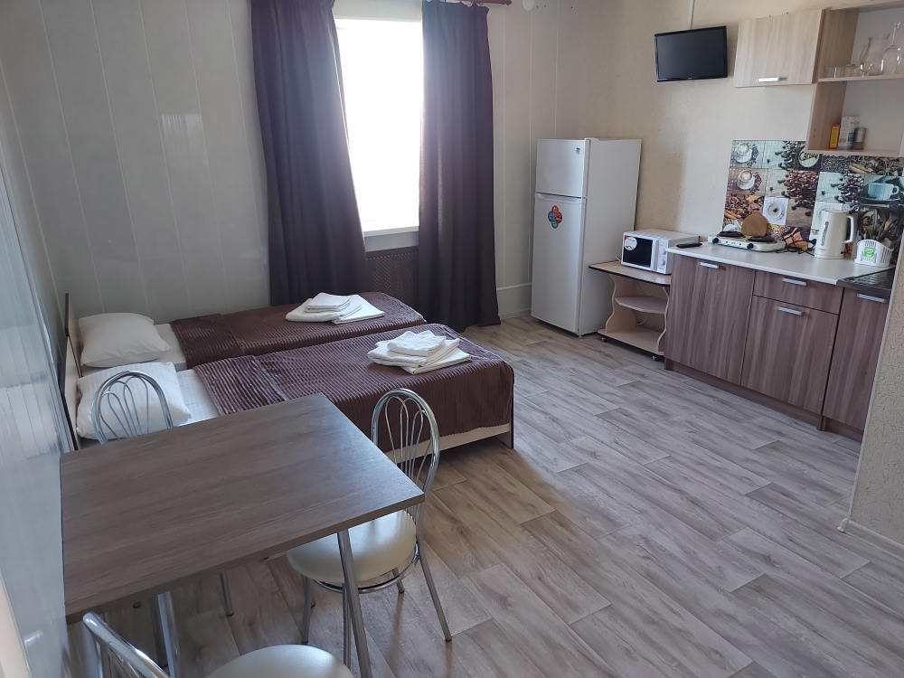 Четырехместный однокомнатный номер с прихожей. Оборудован всем необходимым для комфортного отдыха и проживания. Возможно установка доп.места (платно +500руб/ночь). Номер находится на втором этаже. Номер укомплектован кондиционером, смарт TV 43», цифровое тв, Wi-Fi, холодильник, эл.чайник, посуда, фен, сейф.