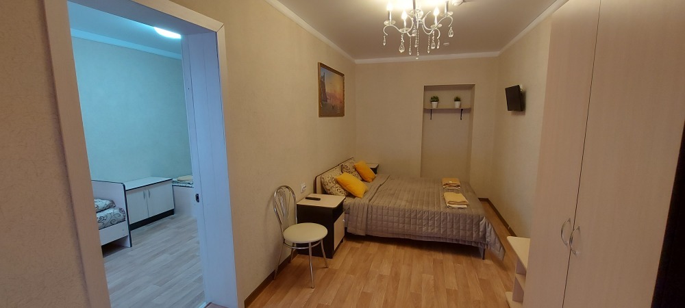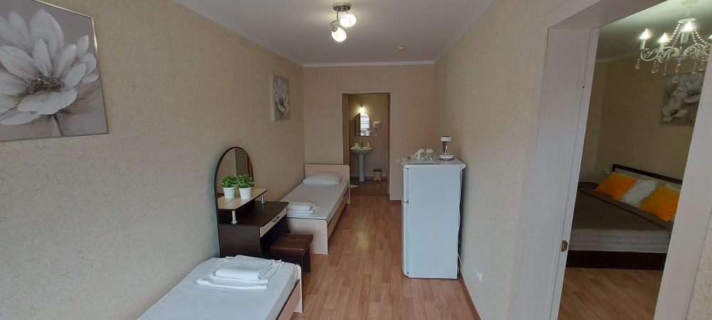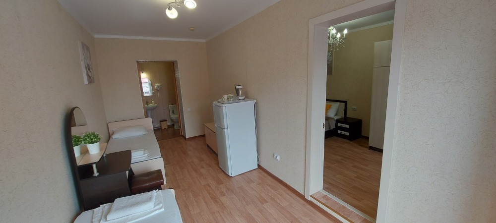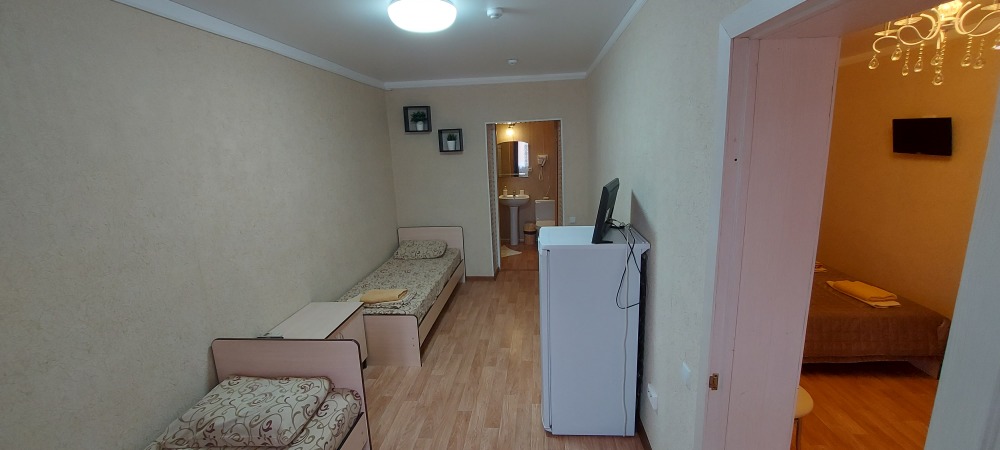 Четырехместный двухкомнатный комфортный номер. Оборудован всем необходимым для комфортного отдыха и проживания.
