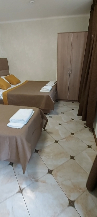 Трехместный, комфортный номер. Оборудован всем необходимым для комфортного отдыха и проживания. Возможно установка доп.места (платно +500руб/ночь). Трехместные номера находится как на первом, так и на втором этаже (уточняйте при бронировании).