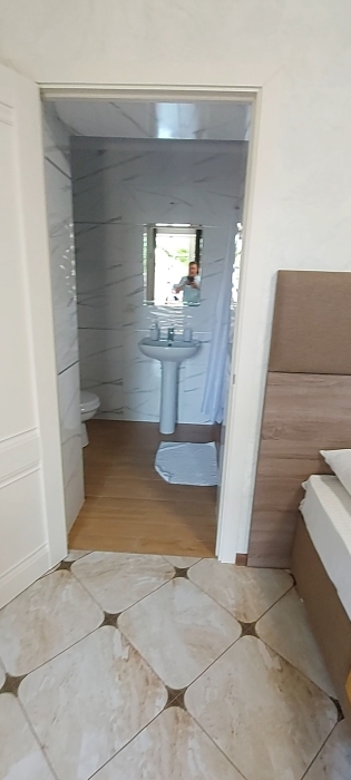Номер находится как на первом, так и на втором этаже. Номер укомплектован кондиционером, два смарт TV 43», цифровое тв, Wi-Fi, холодильник, эл.чайник, посуда, фен, сейф. Санузел с душевой кабиной.