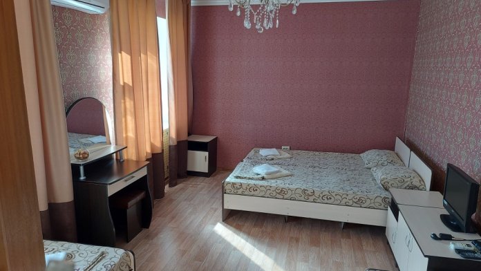 Каждый номер нашего гостевого дома оснащен всем необходимым для комфортного проживания гостей: климат-контроль, отдельная душевая с санузлом, холодильник, телевизоры смарт TV, цифровое телевидение, сейф, фен, чайник, посуда.