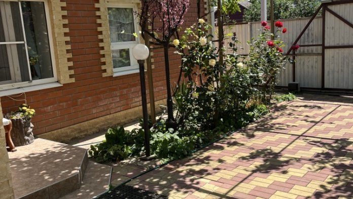 Дворовая территория большая, оборудована детской площадкой, площадкой для пикника, беседками и бассейном. Парковка есть внутри двора так и возле дома.