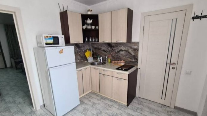 К Вашим услугам новый номер с отдельной спальней. В номере кухня со всей необходимой кухонной утварью, индукционной плитой, микроволной печью, чайником, холодильником, кулером. В номере есть телевизор со спутниковым ТВ, Wi-Fi, сплит-система, фен, терраса с зоной отдыха на свежем воздухе. В каждом номере имеется свой водонагреватель.