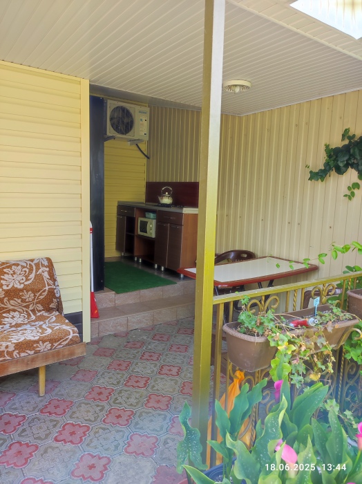 Двухкомнатный отдельный дом со всеми условиями, своей кухней и зоной для отдыха. В доме в каждой комнате двух спальный диван-кровать, шкаф и всё необходимое, есть отдельный выход с каждой комнаты. Дополнительно спальное место, кресло кровать. Весь дом для одной семьи.