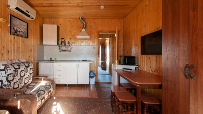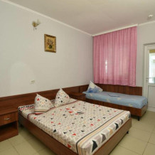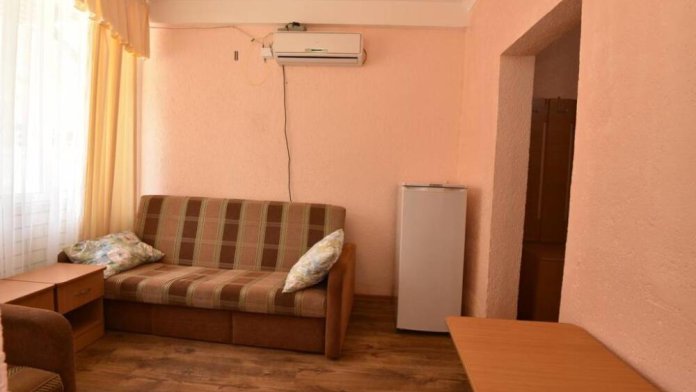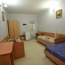 2 раздельные комнаты, отдельная кухня, раздельный санузел. Номер занимает весь 3-й этаж и по сути своей представляет двухкомнатную квартиру. В каждой комнате сплит-система, телевизор, мебель. Рассчитан на 8 мест.