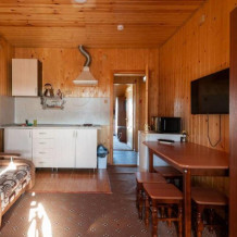 В гостевом доме для самостоятельного приготовления пищи предоставляется кухня со всем необходимым, расположенная на 1 этаже. В составе кухни газовая плита, микроволновая печь, мойка, посуда. Просторная столовая с телевизором обустроена в холле первого этажа.