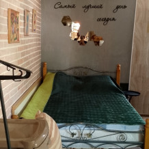 Сдается домик на закрытой территории, с парковкой и мангальной зоной. В домики отдельная кухня, санузел с душевой. Двухспальная кровать и кресло кровать. Веранда. Интернет, телевизор, кондиционер, микроволновая печь и т. д. До пляжа 1700 метров. Местность не гористая. Сто метров от домика находиться рынок, аптеки, круглосуточный магазин.