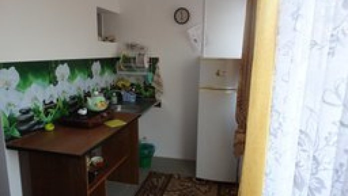 Гостевая кухня общая, оборудована холодильниками, микроволновой печью, газовой плитой и столовыми принадлежностями.