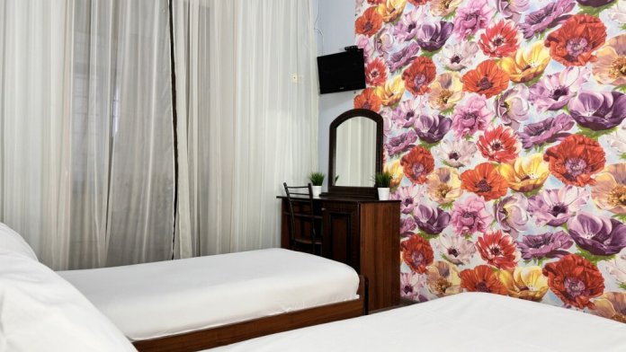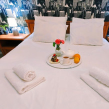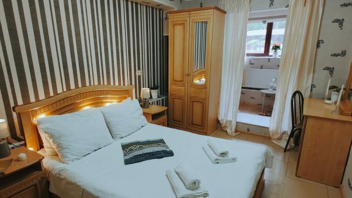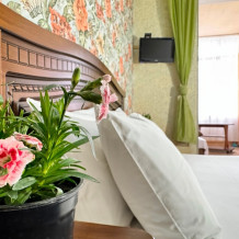 Номер оснащен: двуспальная кровать или две односпальные кровати, прикроватные тумбочки, шкаф, туалетный столик, зеркало, телевизор, мини-холодильник.