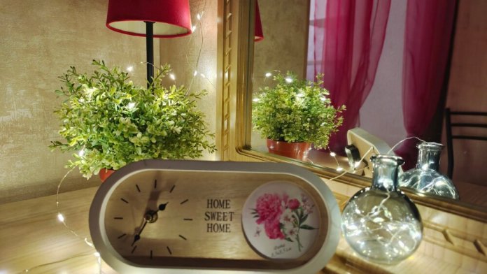 В гостиной – диван-кровать, тумбочка, журнальный столик, телевизор, мини-холодильник, кондиционер.