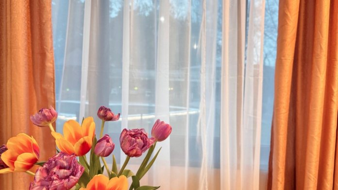 Трехместный номер с панорамными окнами и видом на колесо обозрения.