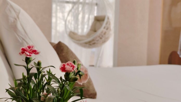 Номер оснащен: двуспальная кровать, кресло-кровать, прикроватные тумбочки, комод, зеркало, шкаф, телевизор, мини-холодильник, кондиционер, кресло-кокон.