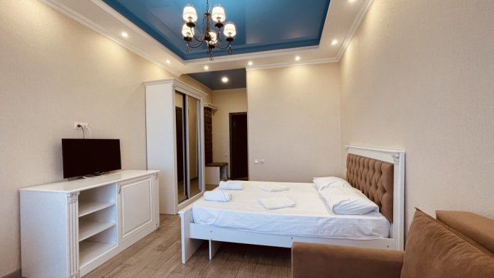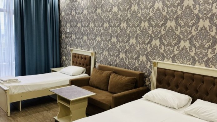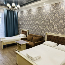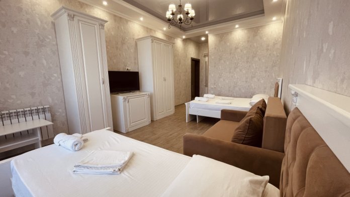 Трехкомнатный номер со всеми удобствами. В номера есть все необходимое для комфортного проживания. На кухне вся необходимая посуда, и техника, большой обеденный стол. В спальне вся необходимая мебель. Санузел раздельный. Большая душевая кабина. Номер расположен на первом этаже.