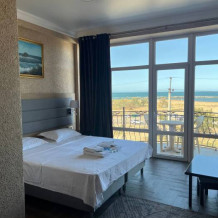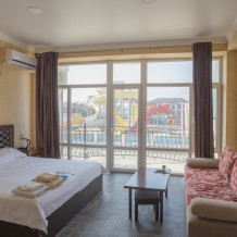 Здание отеля способно одновременно вместить более 200 человек. В его жилом фонде номера разных категорий: «люкс», «стандарт с видом на море» и «стандарт с видом на горы». Все номера отлично меблированы, обеспечены санузлом с душем, имеют собственные балконы, с которых открываются чудесные виды на морские пейзажи. В каждом из них присутствует необходимый комплект бытовой техники: системы кондиционирования и холодильники, телевизоры и телефоны. Есть доступ Wi-Fi.