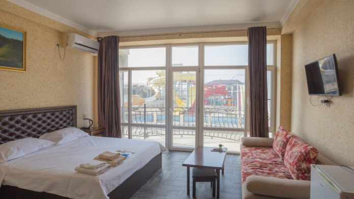 Люкс двухкомнатный с комфортом разместит семью до 5 человек. Например 2 взрослых и 3 детей.