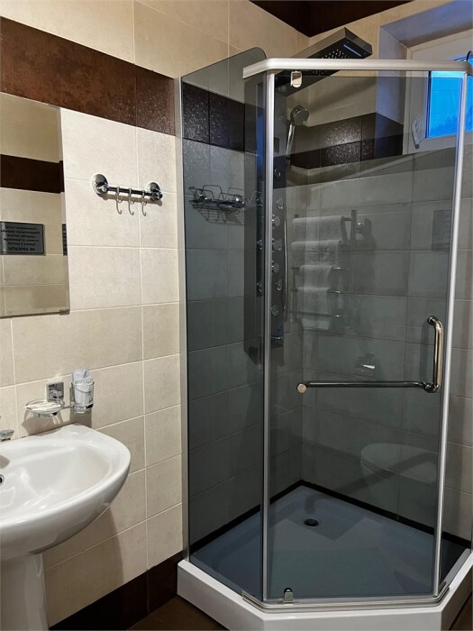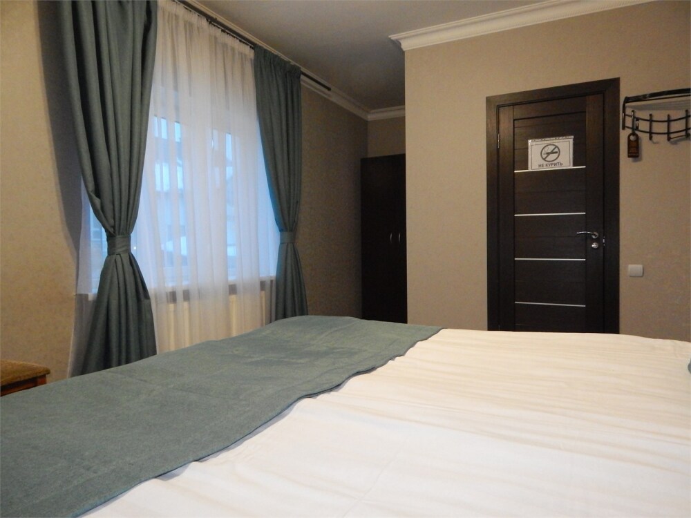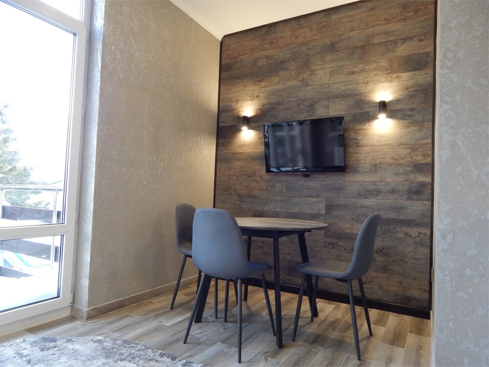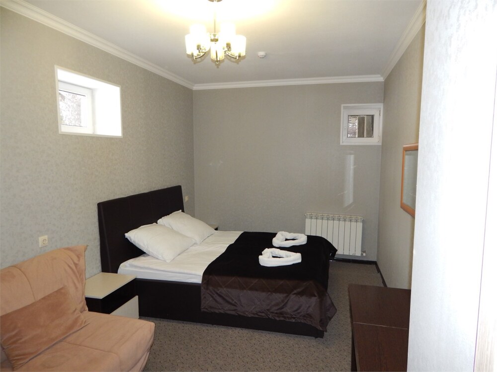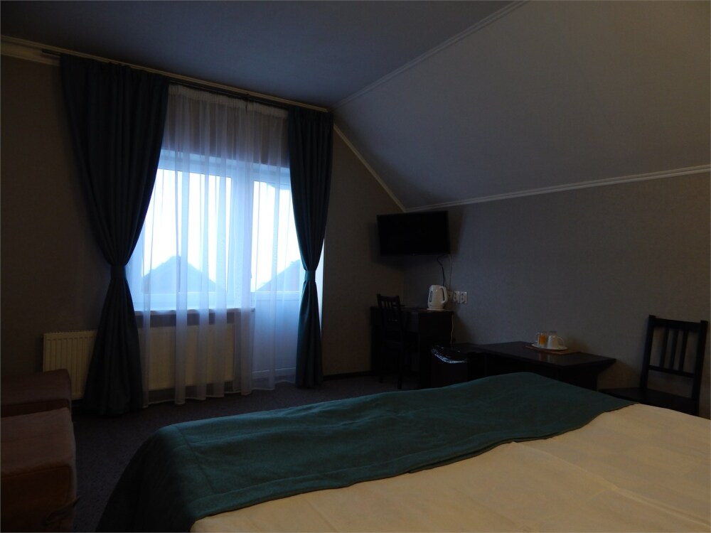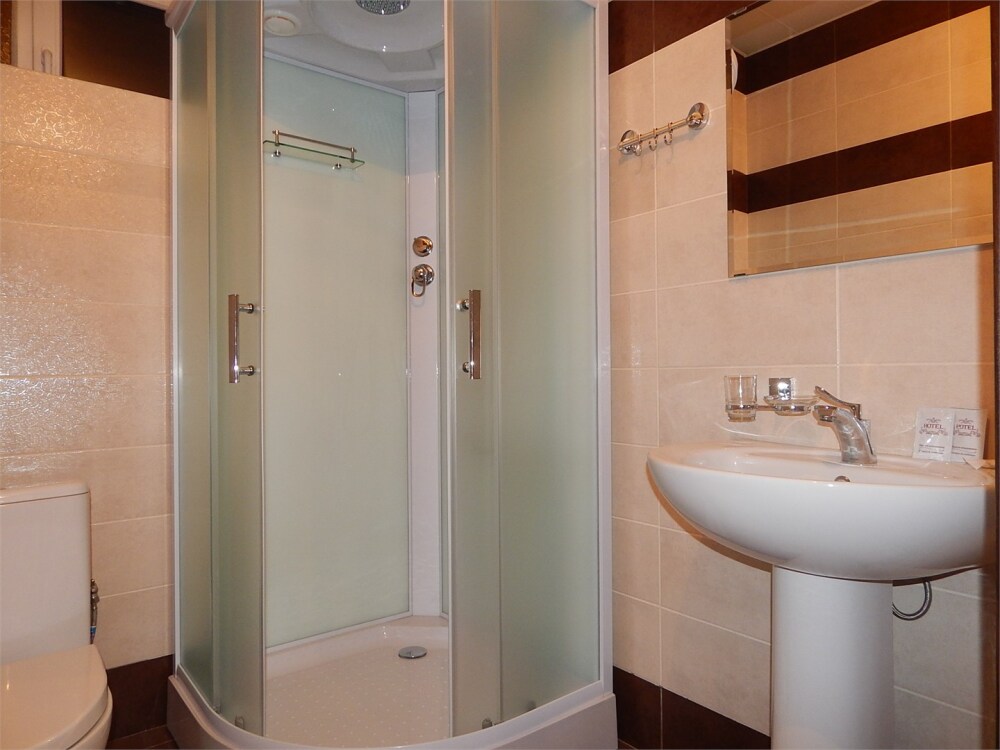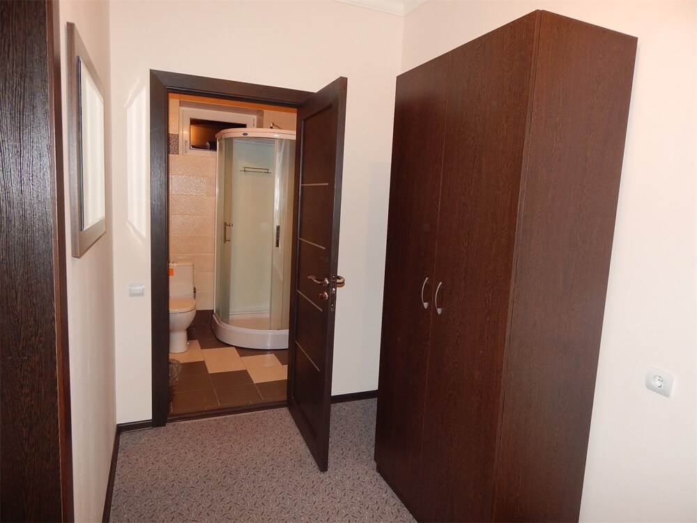 Номер находиться на 4 этаже, из окна открывается вид на горы. Ванная с душевой кабинкой и всеми необходимыми принадлежностями.