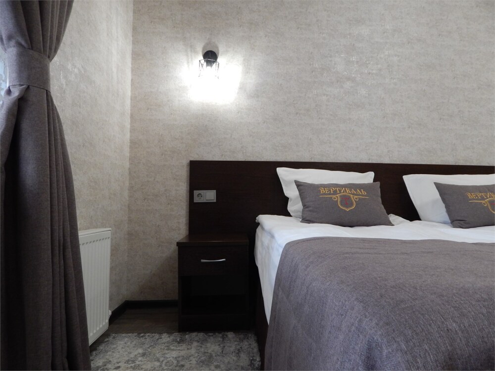 Отель «Вертикаль» находится в 3 км от центра города. Неподалёку: Маятниковая канатная дорога Эльбрус-1, Гондольная канатная дорога Рома-1 и Маятниковая канатная дорога Эльбрус-2.