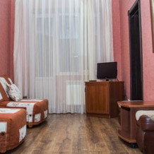 Двухкомнатный четырёхместный номер 24 м². В каждой комнате: шкаф, телевизор, 2 кровати, журнальный столик, тумбочки, пуфики, 1 душ и санузел на две комнаты, т. е. на 4 человека.