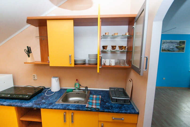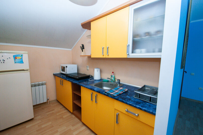 На территории гостевого дома есть небольшой и уютный двор, места для отдыха на свежем воздухе, мангал, общая кухня-столовая, оборудованная всем необходимым для самостоятельного приготовления пищи.