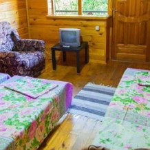 Номера со всеми удобствами находятся в 4-х деревянных корпусах и оборудованы телевизорами, комфортабельной мягкой и корпусной мебелью, сплит-системами, санузлами с душем. Возле номеров на террасе установлены столики со стульями.