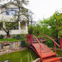 Это настоящая находка для поклонников отдыха в единении с природой. На просторной цветущей, с оригинальным ландшафтным дизайном, территории расположены беседки с мангальными зонами, места для отдыха в тени деревьев, детская площадка с песочницей и качелями, теннисный стол, мини-пруд с лилиями и красными рыбками, магазин с прохладительными напитками и мороженым. Работает бесплатная зона Wi-Fi. Для гостей на автомобиле предусмотрена автостоянка на 10 машин. Организовано 3-х разовое питание в собственной столовой.