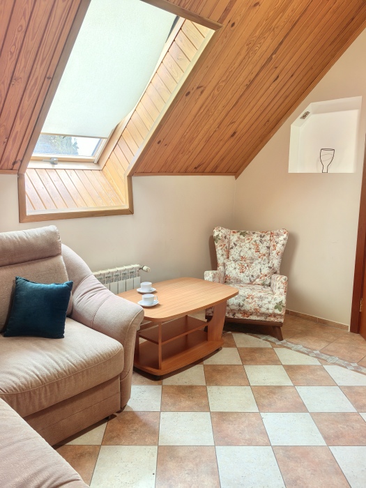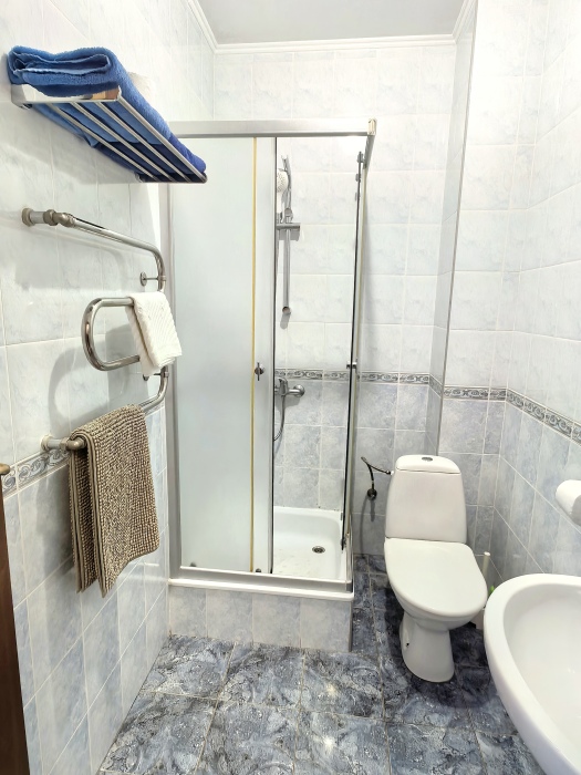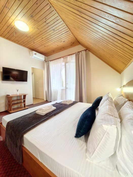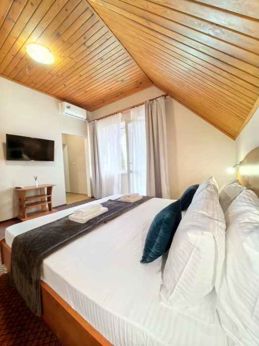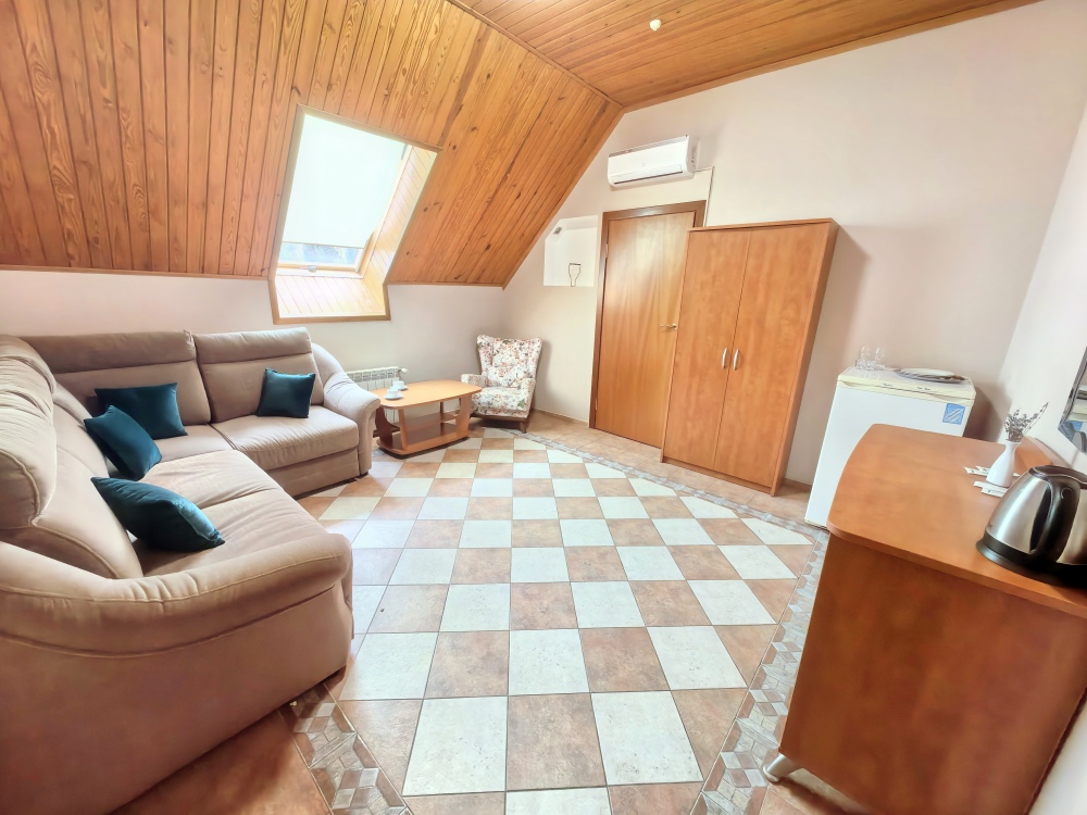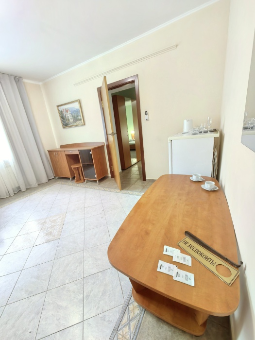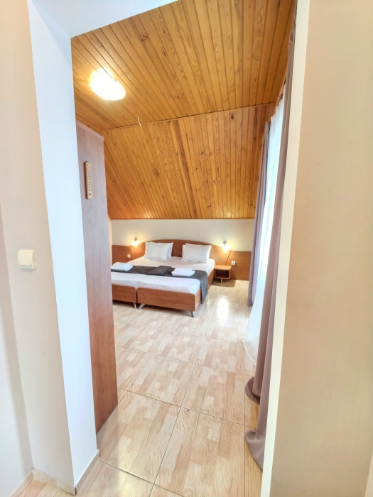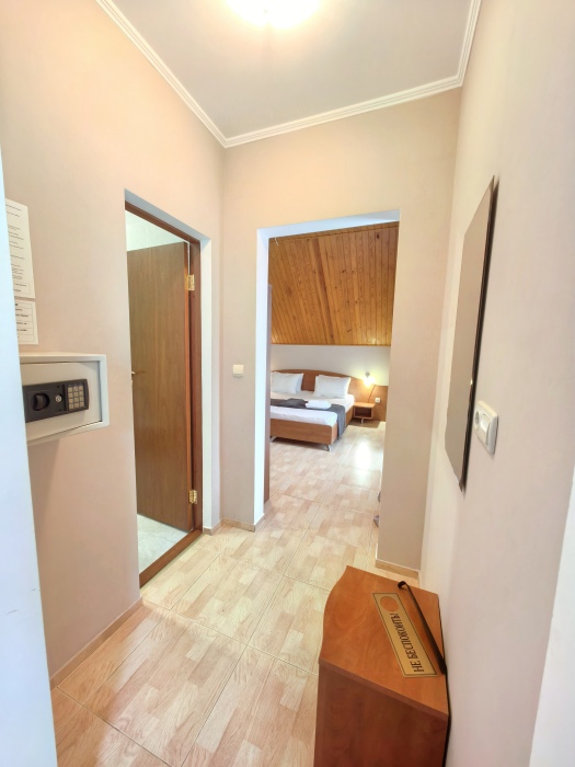 Одна комната – спальня с двуспальной кроватью, с выходом на свой балкон, во второй комнате находится раздвижной угловой диван.