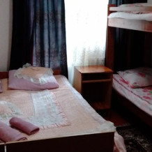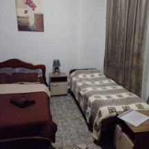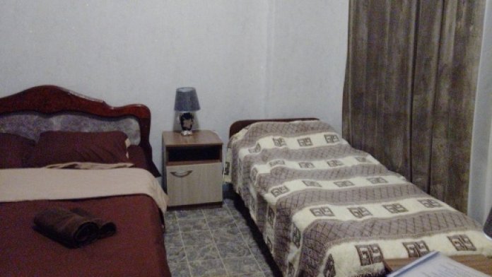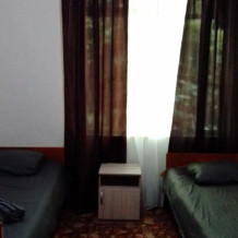 В номере 2.8. одна двуспальная кровать и одна односпальная кровать, шкаф, тумбочка, встроенный кондиционер. Из окна открывается прекрасный вид на парк и горы. Чистый, уютный номер, лучший из категории «Эконом». Находится в конце коридора, там всегда тихо и спокойно. В коридоре всего 3 номера. Санузел, душевая, сушилка, гладильная доска, утюг, чайный столик с посудой, электрочайник на этаже. Белье и полотенца, туалетная бумага, жидкое мыло, освежитель воздуха предоставляются.