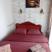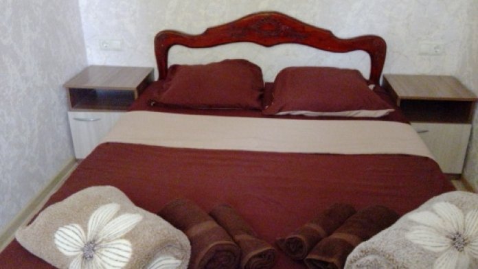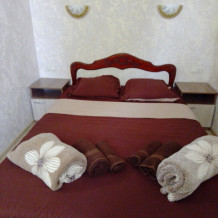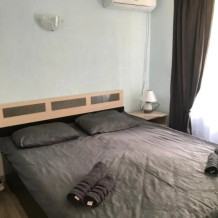 Одна двуспальная кровать. В номере есть встроенный кондиционер, холодильник, телевизор, санузел, стол, стулья, тумбочки, шкаф для одежды, WI-FI. Душевые кабинки рядом на этаже. Вид на море. Белье и полотенца, туалетная бумага, жидкое мыло, освежитель воздуха предоставляются. Гладильная доска, утюг, сушилка для белья, печь свч-печь, электрочайник с чайным набором на этаже.