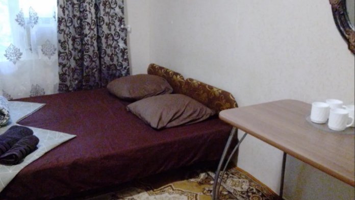 В номере двухспальная и односпальная кровати, сплитсистема, холодильник, телевизор, стол, стулья, тумбочки. Санузел со всеми удобствами: туалет, душевая кабина. Белье и полотенца, туалетная бумага, жидкое мыло, освежитель воздуха предоставляются. Гладильная доска, утюг, сушилка для белья, печь свч-печь, электрочайник с чайным набором на этаже.