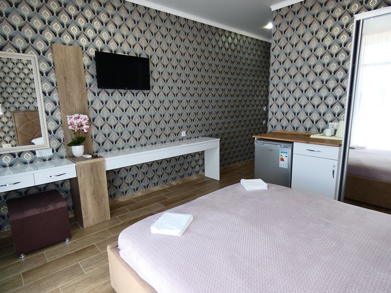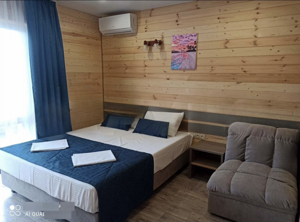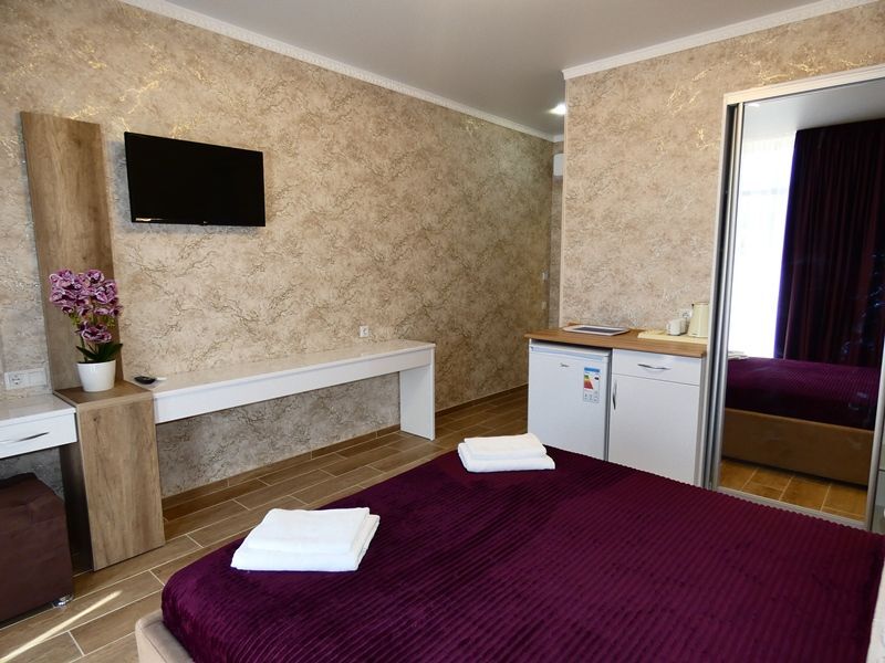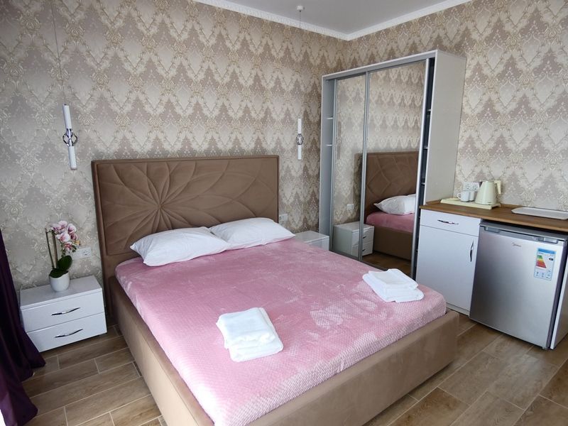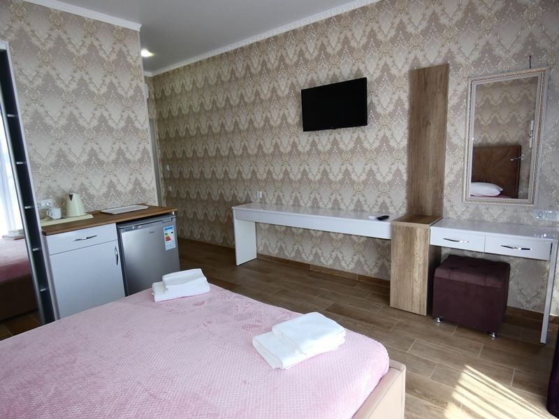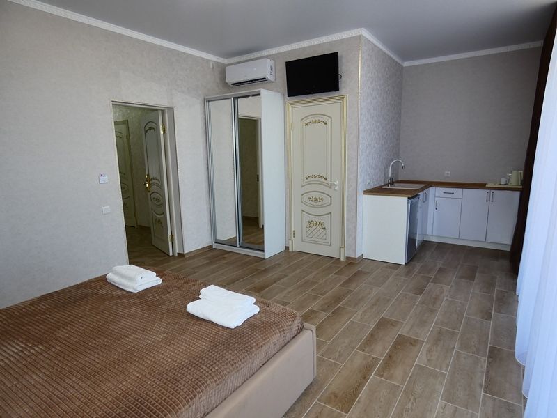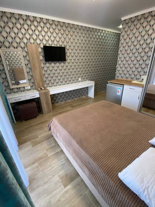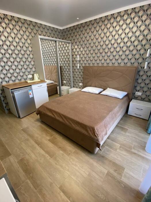 Детали номера: двухспальная кровать, санузел, мини кухня, холодильник, телевизор (с встроенным интернетом), кондиционер, мебель, чайник с чайным набором, полотенца (банные и для рук), фен, туалетные принадлежности (зубная щетка, шампунь, зубная паста, мыло, туалетная бумага), тапочки.
