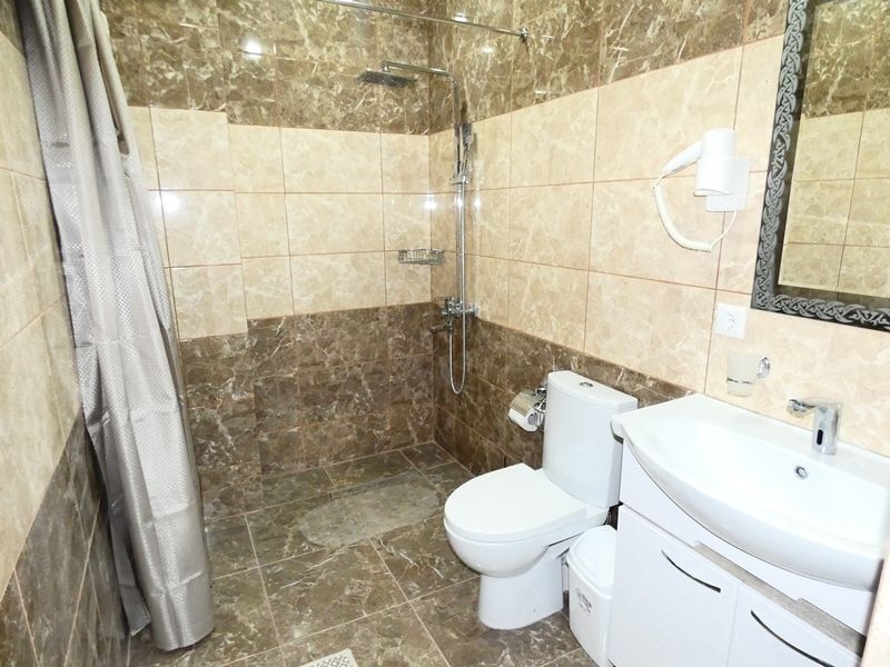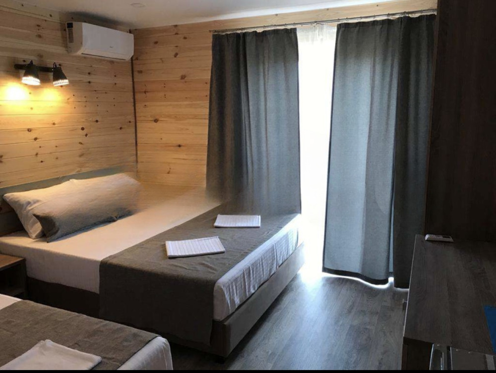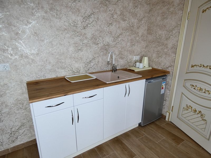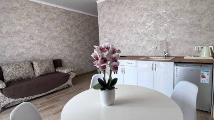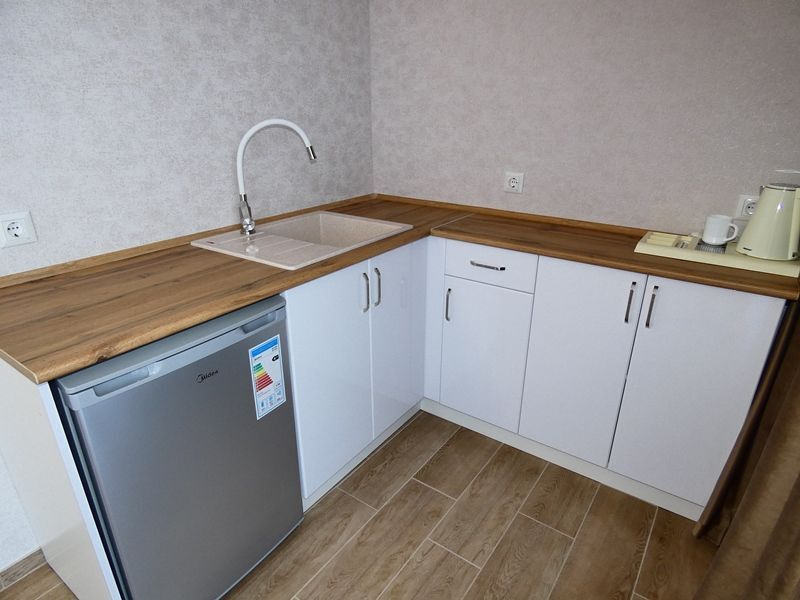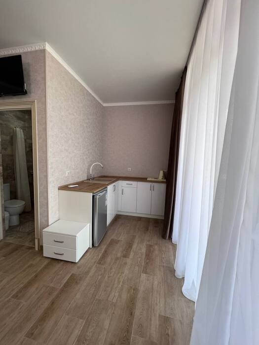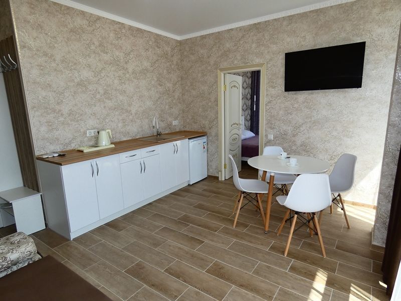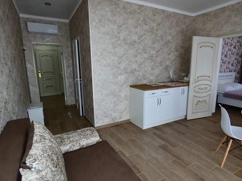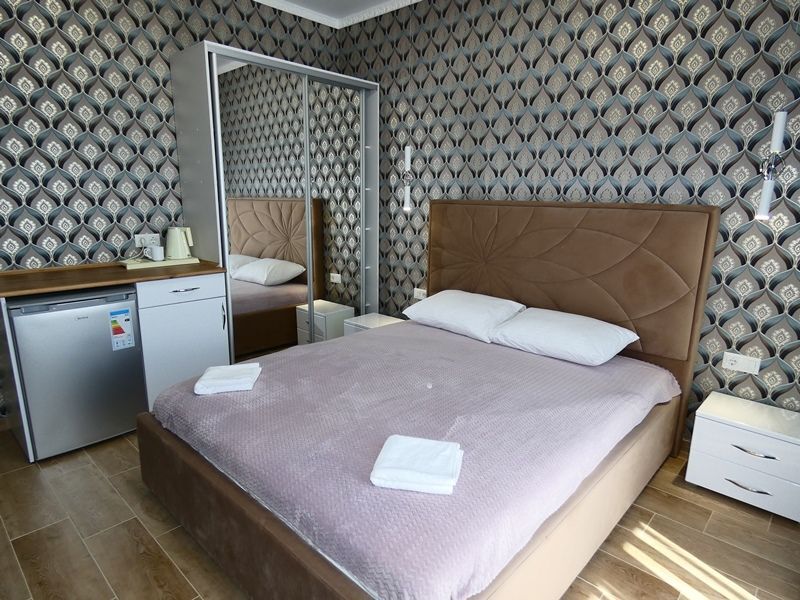 Детали номера: двухспальная кровать, санузел, мини кухня, холодильник, телевизор (с встроенным интернетом), кондиционер, мебель, чайник с чайным набором, полотенца (банные и для рук), фен, туалетные принадлежности (зубная щетка, шампунь, зубная паста, мыло, туалетная бумага), тапочки.
