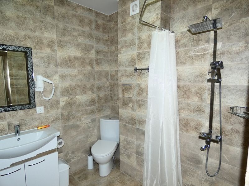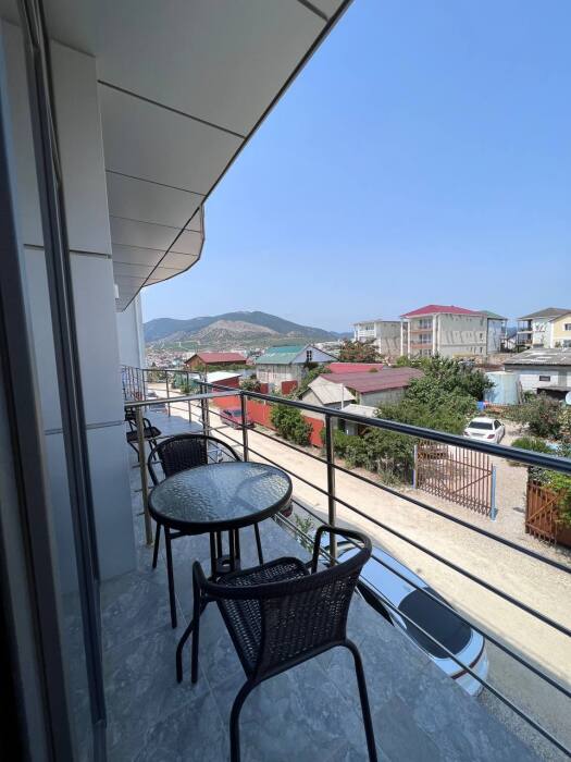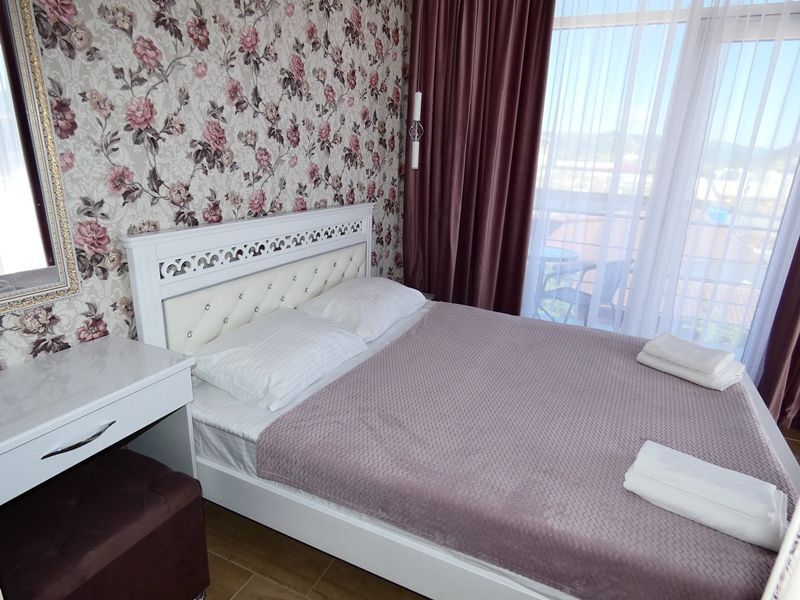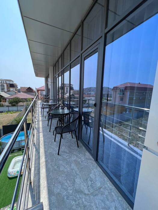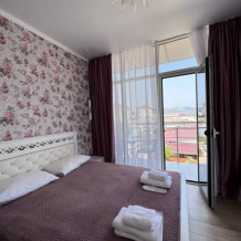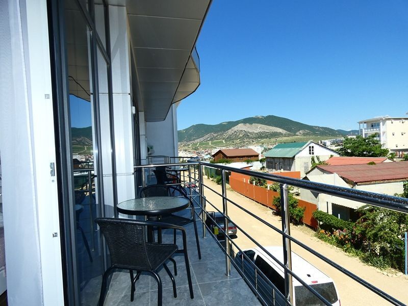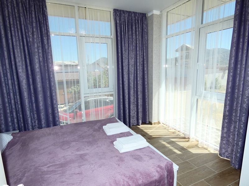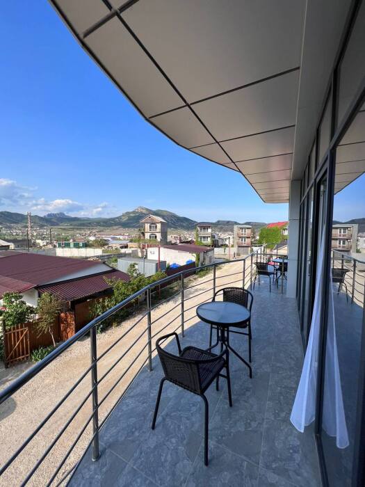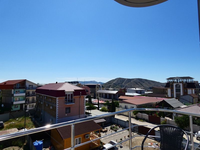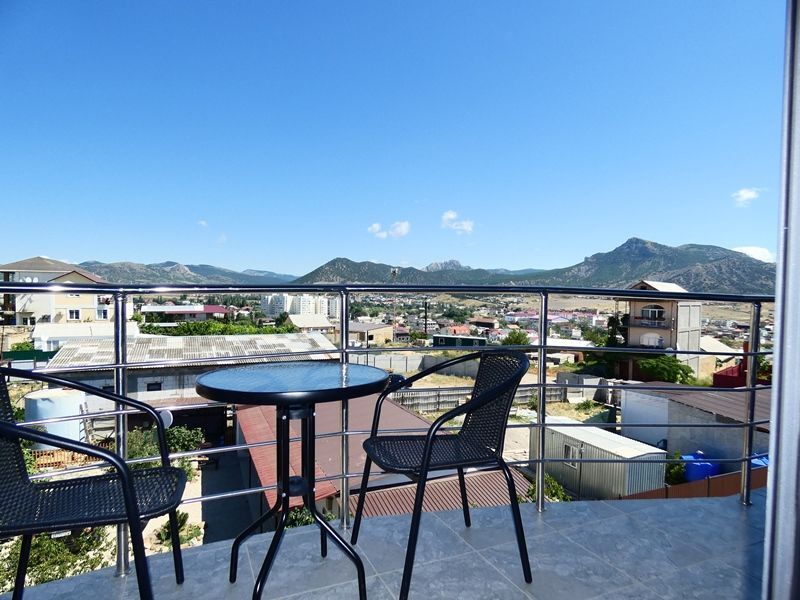 На территории гостевого дома есть уютная столовая, где Вы сможете вкусно покушать. На террасе 4-го этажа расположены шезлонги, столики и стульчики – невероятный вид на море, горы, который запомнится на всю жизнь, и дает возможность фотографироваться на фоне закатов. Вид не только на море и горы, но и на сам город Судак, Новосветские бухты и главную достопримечательность Судака – Генуэзскую крепость. Номера в гостевом доме рассчитаны от 2 до 5 человек. В номерах есть балкон (лоджия).