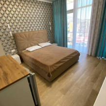 Детали номера: двухспальная кровать, санузел, мини-кухня, балкон ( стол, стульчики), холодильник,