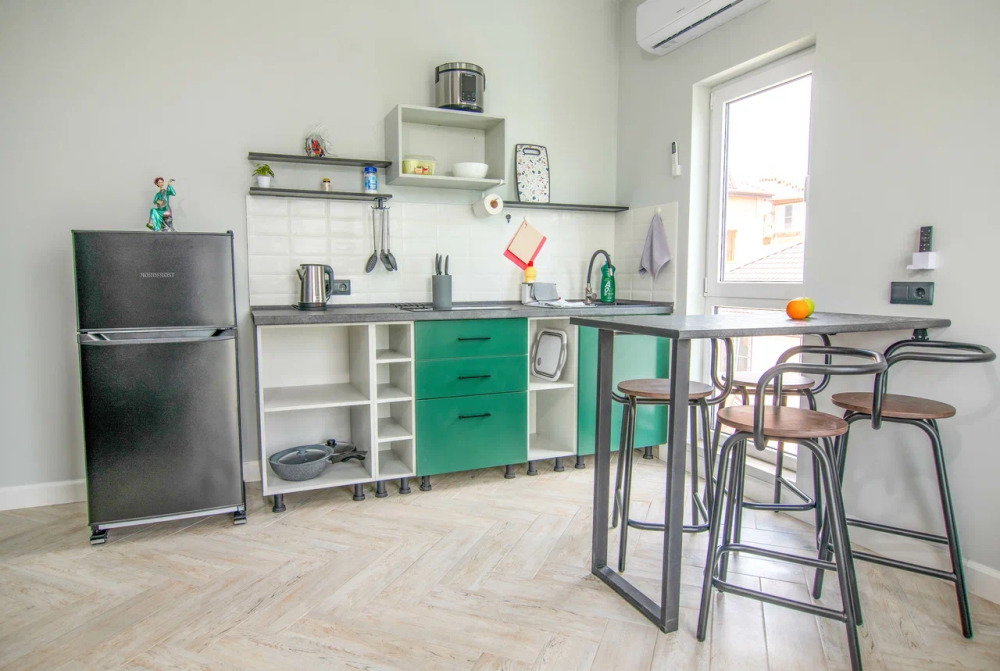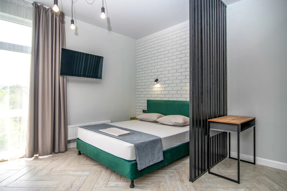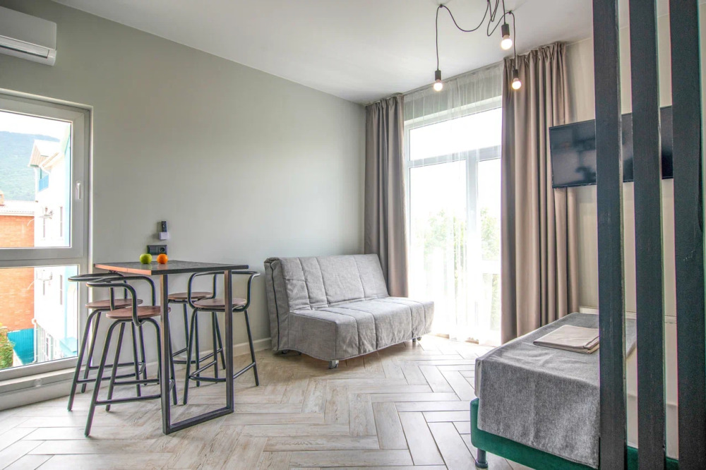 В центральной части города, в 15 минутах ходьбы от моря и новой красивой набережной находятся «Апартаменты-Студия на Октябрьской» . Квартира новая— отличный современный ремонт, вся мебель и техника новые, балкон с видом на горы . В квартире есть все необходимое для комфортного проживания, могут разместиться до 4-х взрослых.