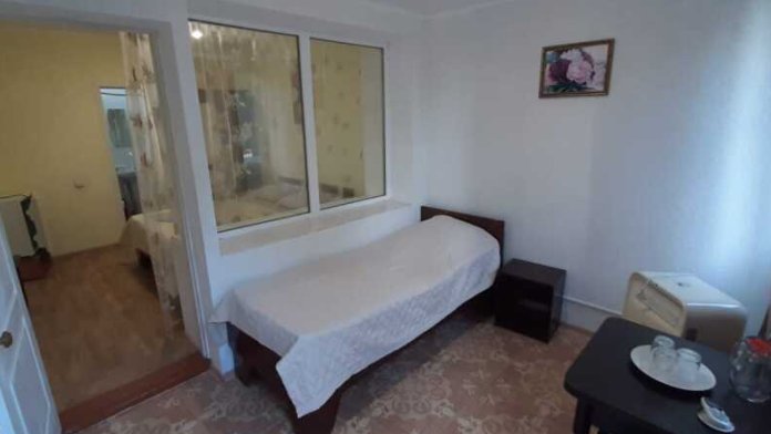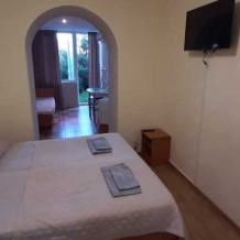 Однокомнатные номера на 1м и 2м этаже. Имеется общий балкон. В номере: двуспальная кровать, односпальная кровать, прикроватные тумбочки, шкаф, зеркало, телевизор, кондиционер, ванная комната, фен, полотенца, постельное бельё.
