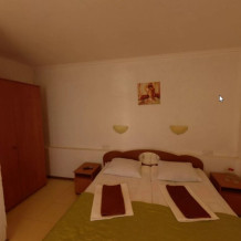 Однокомнатные номера на 1м и 2м этаже. Имеется общий балкон. В номере: двуспальная кровать, прикроватные тумбочки, гардеробная, зеркало, телевизор, кондиционер ,ванная комната, фен, полотенца, постельное бельё.