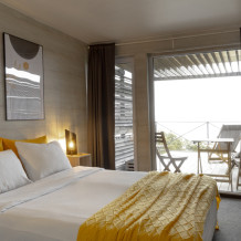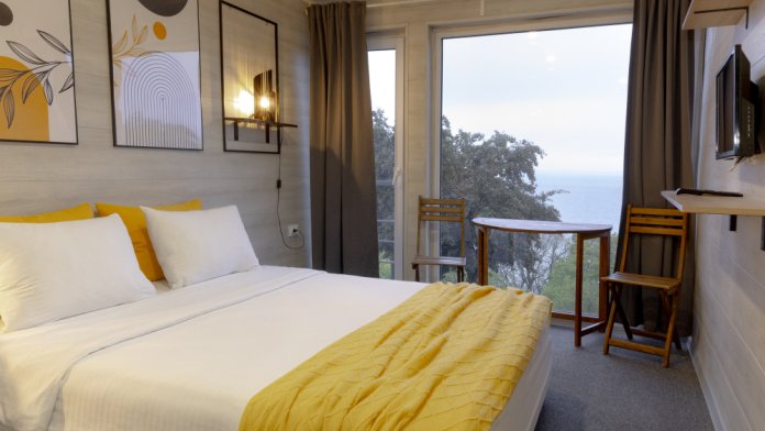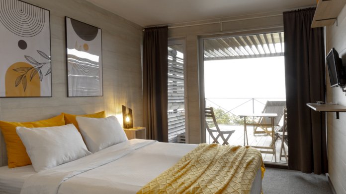 Из каждого номера открывается панорамный вид на море с собственной уединённой террасой. Во всех номерах среди удобств собственная ванная комната, гардероб и телевизор с плоским экраном. В каждом номере имеется холодильник и сплит-система, Wi-Fi. В стоимость каждого номера включен завтрак.