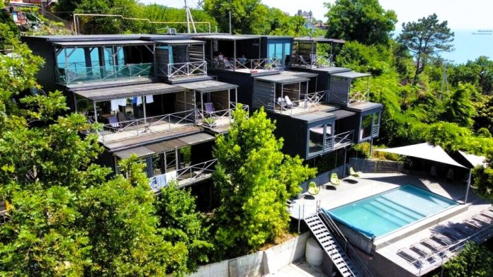 Здание отеля имеет оригинальную модульную концепцию в виде каскада стилизованного под контейнера. На территории отеля располагается небольшая детская зона и подогреваемый панорамный бассейн с видом на море (подогрев с октября по май).