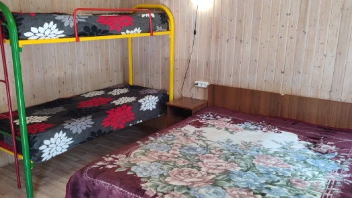 Однокомнатный четырехместный номер с двухярусной кроватью. Подходит для семьи с детьми.