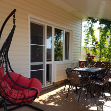 Мебель новая, современный ремонт, кондиционер в каждой комнате, телевизор, интернет,WI-FI по всей территории, два санузла , стиральная машинка-автомат, посудомоечная машина, выход из кухни на террасу,что очень удобно, огороженный двор, мангал, постельное белье, полотенца, посуда, автоматические ворота. Все есть для спокойного, комфортного отдыха.