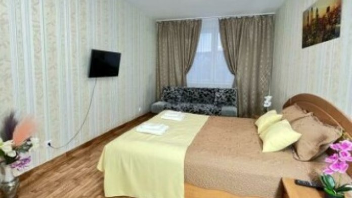 Квартира полностью оборудована: большая кровать и диван в комнате, телевизор, шкаф для одежды, постельное белье и полoтенца, фен, утюг, гладильная доска, сушилка для белья, вентилятор. На кухне имеется кухонный гарнитур, духовка, плитa, микpoволновая печь, чайник, холодильник, посуда, стол и стулья. Также имеется стиральная машинка. Бесплатный Wi-Fi.