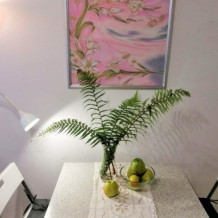 Апартаменты представляют собой светлую и уютную студию на первом этаже с теплым полом и отдельным входом. В апартаментах своя кухонная зона со всем оборудованием для приготовления пищи (СВЧ-печь, газовая плита с духовкой, холодильник, посуда, приветственный набор- чай, сахар, растительное масло) свой санузел с душевым отсеком. Предоставляется постельное белье и полотенца, гель для душа, шампунь, кондиционер, мыло.