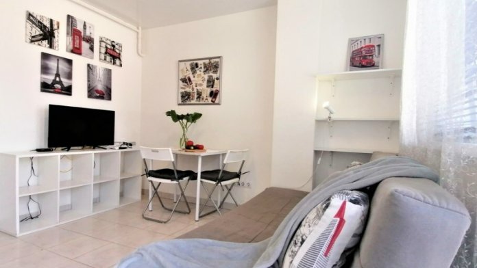 Апартаменты представляют собой евро-двушку (кухню-гостинную и изолированную спальню). В апартаментах своя кухонная зона со всем оборудованием для приготовления пищи, свой санузел с душевым отсеком. Вход в апартаменты отдельно с улицы.