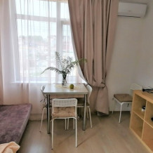 Апартаменты представляют собой евро-двушку (кухню-гостинную и изолированную спальню). В апартаментах своя кухонная зона со всем оборудованием для приготовления пищи (СВЧ, газовая плита с духовкой, холодильник, посуда, приветственный набор - чай, сахар, растительное масло) свой санузел с душевым отсеком. Предоставляется постельное белье и полотенца, гель для душа, шампунь, кондиционер, мыло. Вход в апартаменты отдельно с улицы.